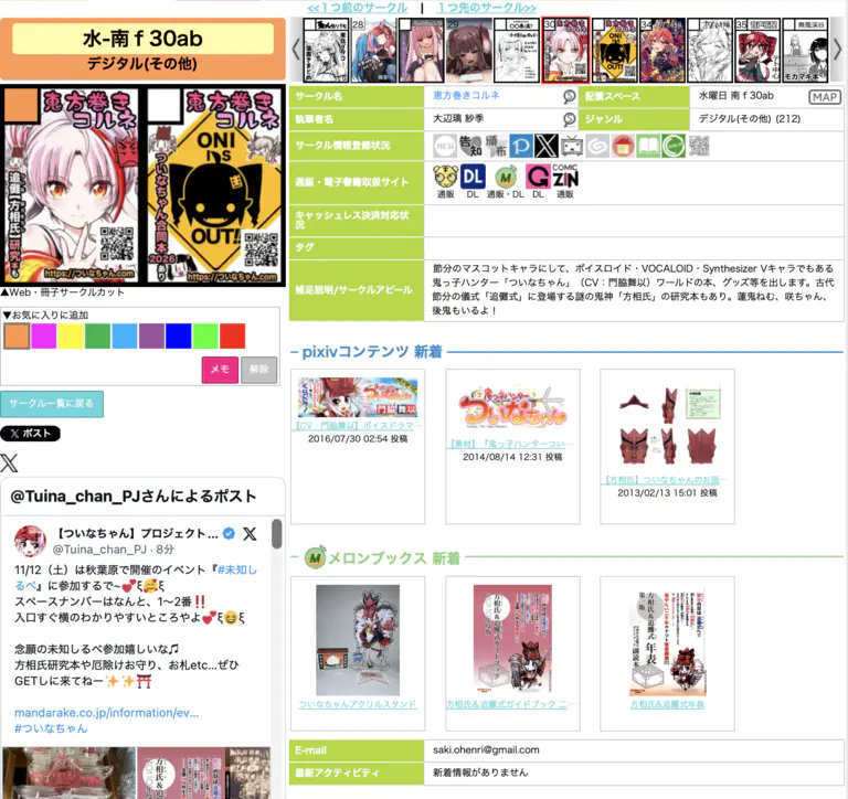 マップを片手に、ぜひ当日はついなちゃんのスペースまで遊びにいらしてください!