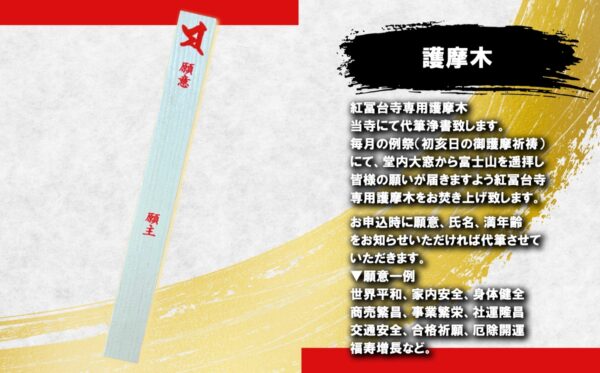 ふるさと納税限定御朱印三種と紅冨台寺専用護摩木の計4点で、