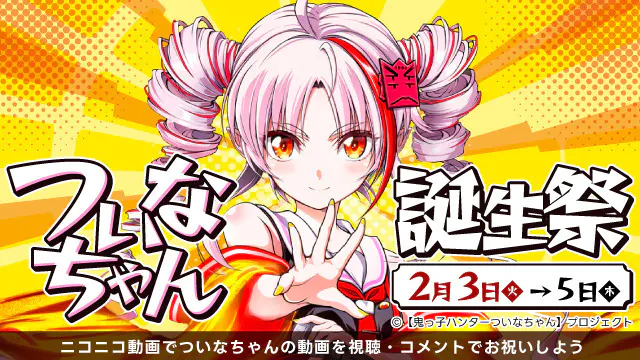 ニコニコでは、2月3日(火)から2月5日(木)の3日間、音声合成キャラクターついなちゃんの誕生祭を開催します。