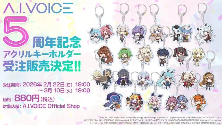記念して「A.I.VOICE5周年アクリルキーホルダー」の受注生産が確定いたしました🎊
