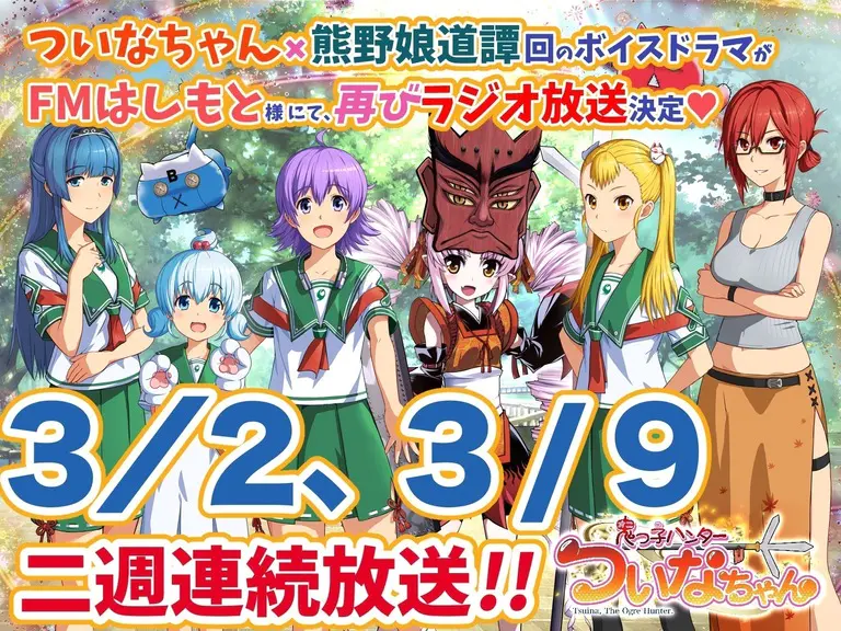 「熊野娘道譚」の可憐で可愛いキャラクターさんたちと、ついなちゃんのワンダフルコラボレーションが、ななたびFMラジオ放送に!