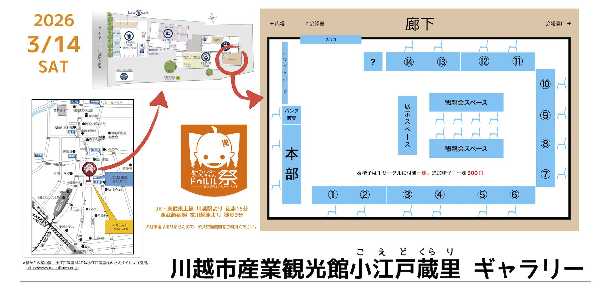 「ついなちゃんドゥルル祭」の会場は、お馴染みの川越市産業振興館 小江戸蔵里様。
